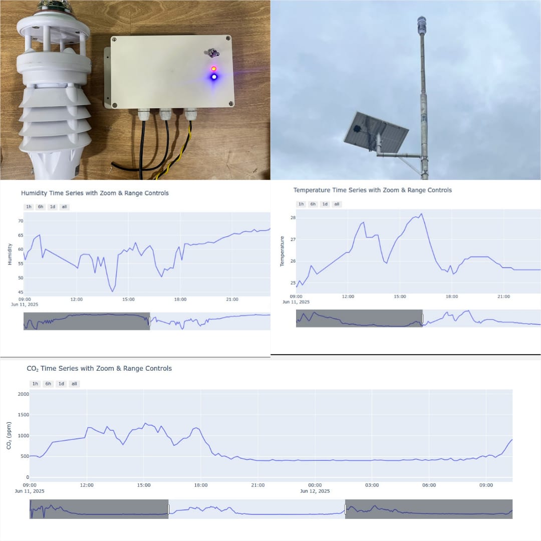 A compact, embedded weather station designed for reliable environmental monitoring. It supports both GSM and Wi-Fi connectivity for real-time data transmission, with dual power options through solar energy and AC supply for uninterrupted operation. Its integrated design makes it easy to deploy in remote or urban locations, ensuring accurate and continuous weather data collection.
